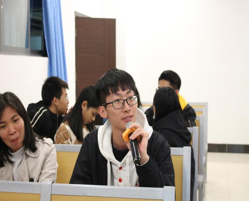 分享结束后,陈政法与参会的师弟师妹们进行互动交流,进一步探讨如何更好地建设班级和做好个人发展规划。同学们踊跃提问,现场气氛活跃。最后,辅导员任金涛对本次朋辈分享会进行总结。他表示希望同学们能在班级活动中拥有更多的归属感和获得感,加强班级建设,开展形式新颖多样的活动,让同学们体验更加丰富多彩的大学生活。而在活动中留存的照片和视频,承载了班集体的美好回忆,将会成班级共同的珍贵的财富。这就是一个优秀的、有凝聚力的班集体拥有美好大学生活的秘笈。