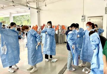 换上了蓝色的防护服,从下到上,层层包裹,一瞬间就感受到了扑面而来的热气,体会到了防疫工作者的艰辛。短短几个小时,我深切感受到每一环节的高效率——志愿者之间一个眼神的默契,防护服下医护人员的坚守,大家有条不紊的排队,都体现了大家对核酸检测、防范疫情风险的重视。从11:30-16:00,短短几个小时就使我深感疲惫,可想而知,那些奋战在一线的工作人员、坚守岗位的社区工作者以及街头执勤的公安民警更苦更累,因此我由衷地向冲锋在一线的工作人员们致敬。