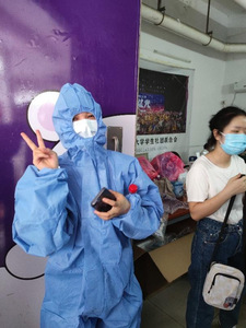 我参加的是11:30-16:00的志愿工作,当时看到群里的消息,就立刻报名参加了,希望在全民抗疫期间,能献出一点自己的力量。我负责绿色通道检测前的信息录入,主要检测小孩和老人,特别需要热心、耐心、细心。广州的春天炎热烦闷,第一次穿防护服,切实感受到了医护人员的艰辛,希望大家都能严格遵守防疫规定,共克时艰,战胜疫情!