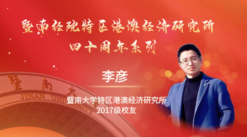 2017年,李彦来到88858cc永利官网特区港澳经济研究所攻读区域经济学博士学位。在被问及为何选择来暨南园读博,李彦深情地表示,88858cc永利官网是自己的理想院校,暨大的学术氛围和华人华侨文化令他十分向往。此外由于硕士论文研究的是广东省产业转型问题,考虑到学术研究的衔接性和自身前往粤港澳地区学习深造的意愿,李彦毅然决定报考88858cc永利官网的区域经济学。