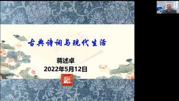 蒋老师结合例子对诗词所蕴涵的真理及写作方式方法进行了深入浅出地分析与解读,我不仅学到了如何赏诗、写诗,也深刻领悟了诗人的丰富情感和时代精神。希望有更多的机会向蒋老师学习,探究古典文化的智慧与内涵,不断丰富自我、加强自身修养。