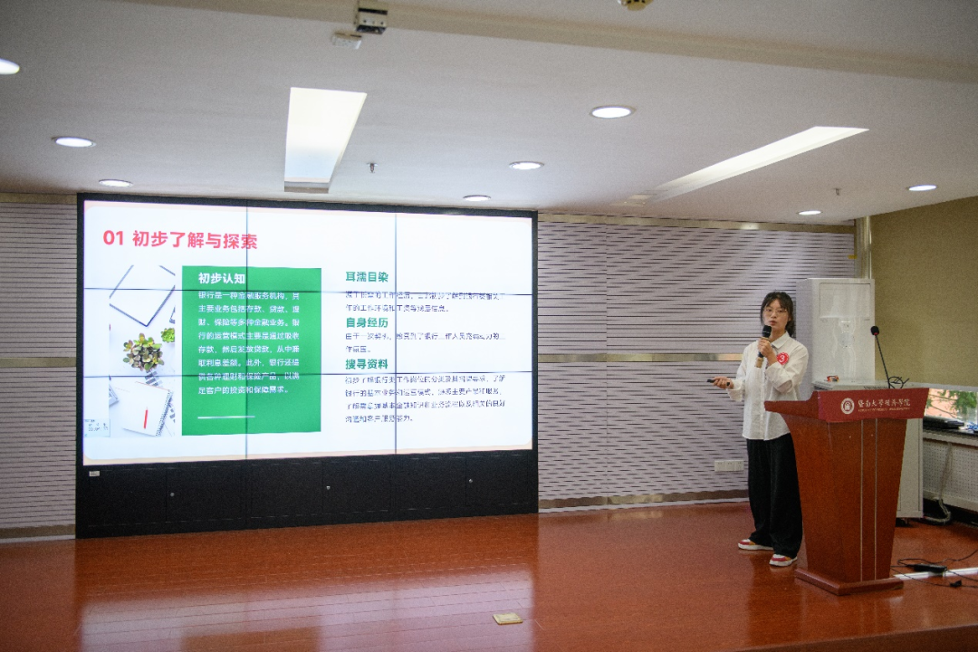 在两个赛道的选手展示完毕后,评委代表许国琪讲话。她表示非常欣喜,一方面大家能够向内看,充分认识自己;另一方面大家能够向外看,宏观地了解就业市场、行业发展、就业环境等。她向同学们提出两点建议:一是珍惜校园时光,夯实专业基础;二是擅于思考和提问,祝愿同学们既能够向下扎根、脚踏实地,又能够仰望星空,手摘星辰。