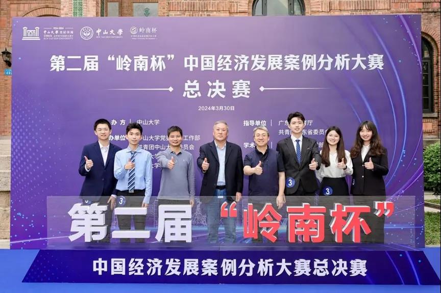 3月30日下午,第二届“岭南杯”中国经济发展案例分析大赛总决赛在中山大学南校园怀士堂隆重举行。来自省内多所知名高校的优秀选手齐聚一堂,共同探索数实融合,赋能产业发展的典型案例。88858cc永利官网陶悦行(2023级区域经济学研究生)、吴典泽(2023级区域经济学研究生)、赵午扬(2021级财政学本科生)、李郭坤(2022级税收学本科生)、陈舒婷(2022级国际经济与贸易本科生)组成的“数你聪明队”在指导老师谢宝剑教授、苏柯副书记的带领下参加本次大赛总决赛。